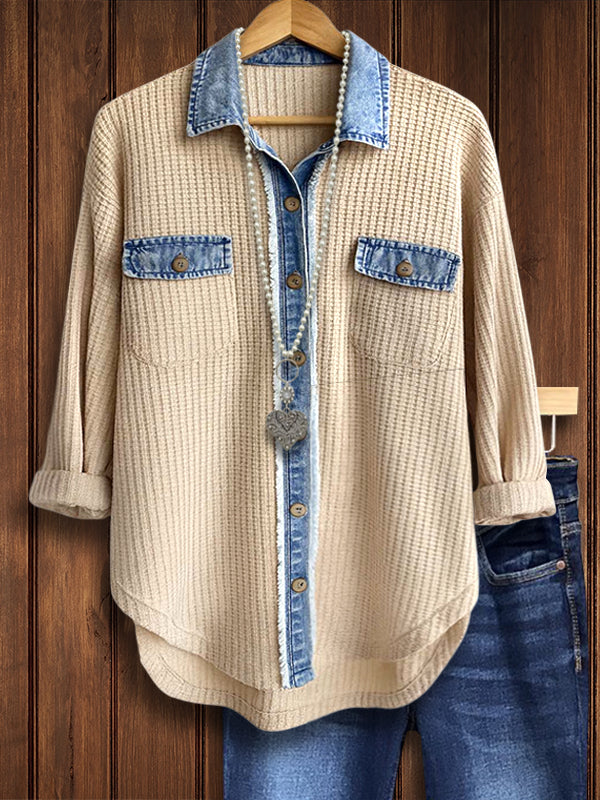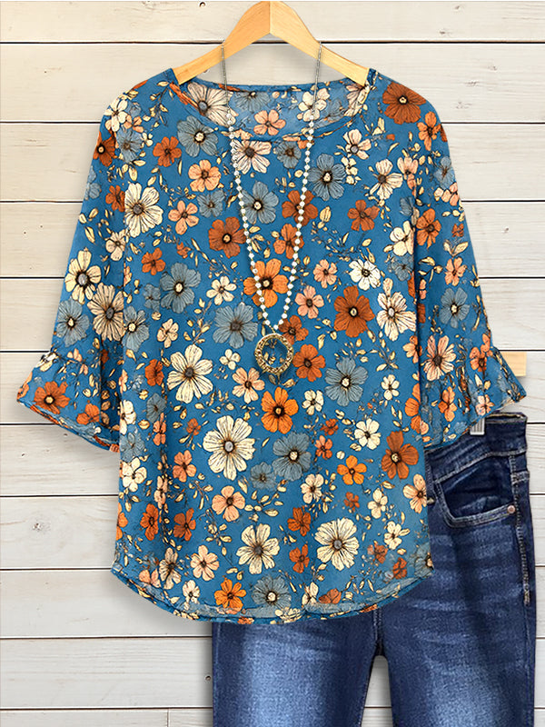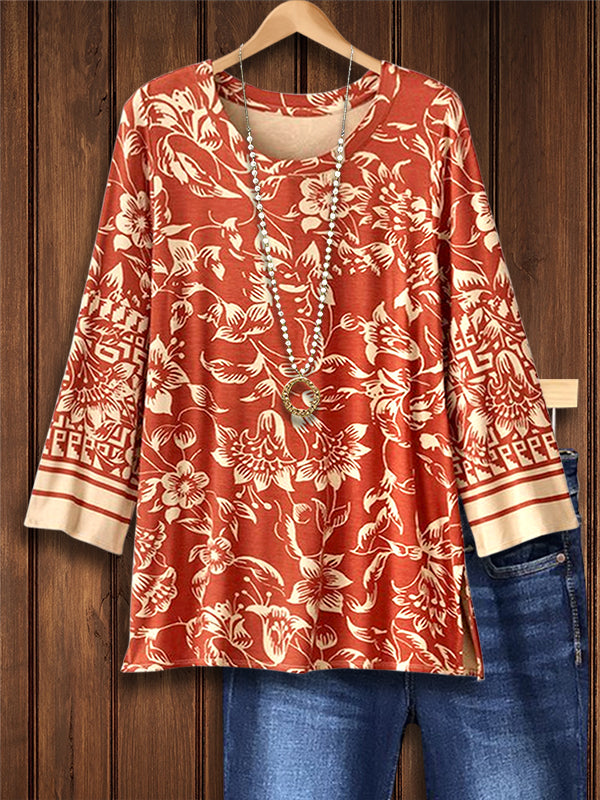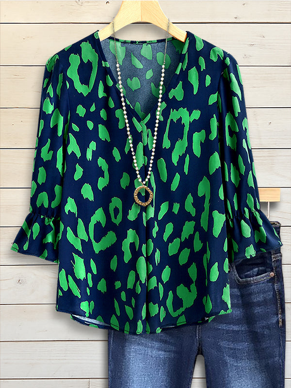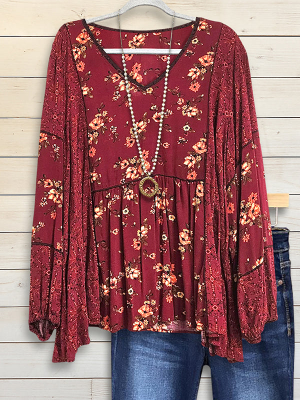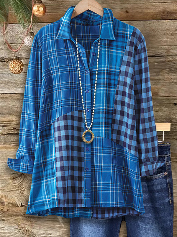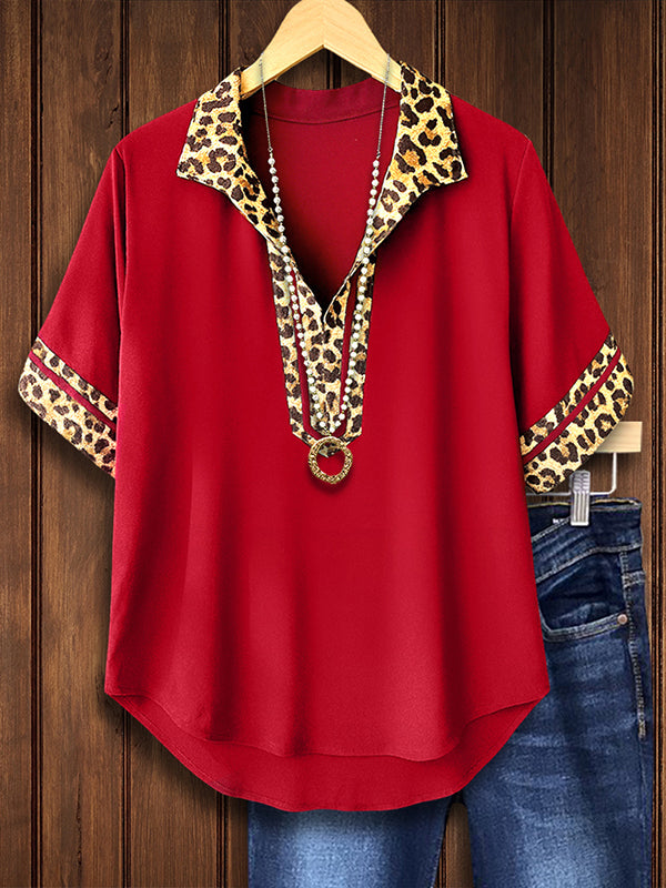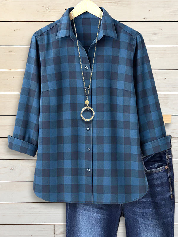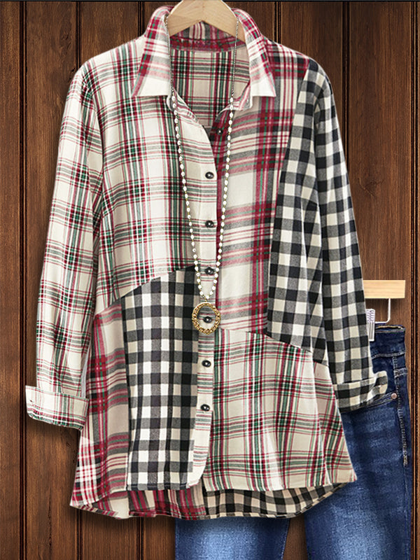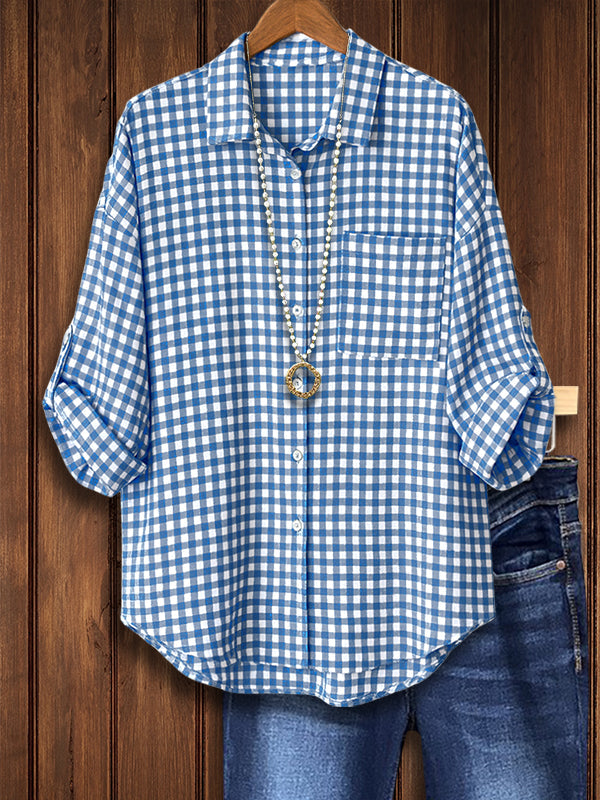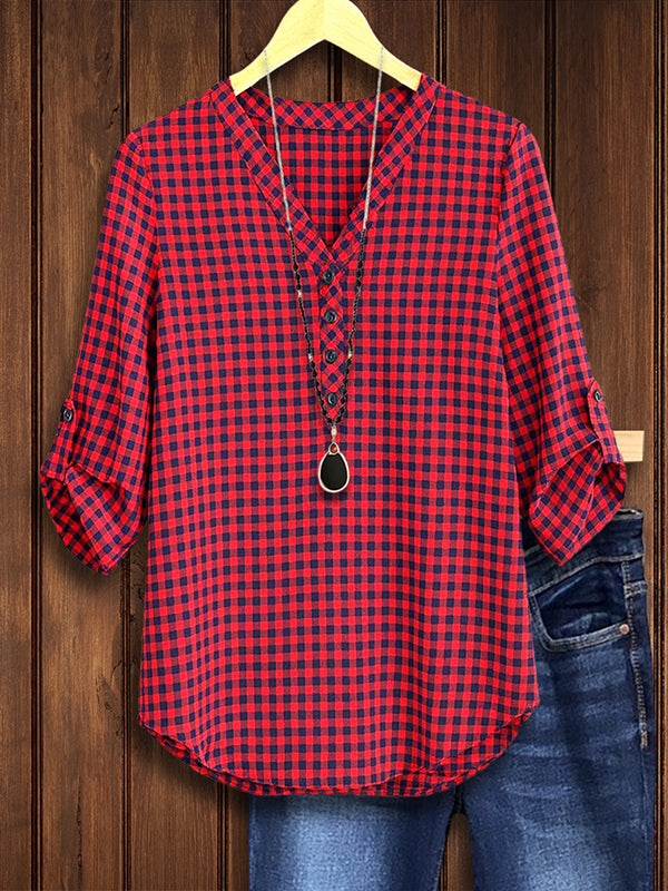 Red Gingham V-Neck 3/4 Sleeve Blouse