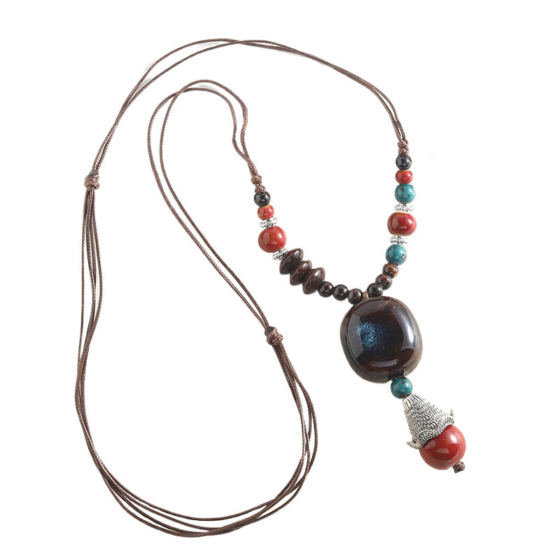 Bohemian Beaded Stone Pendant Necklace