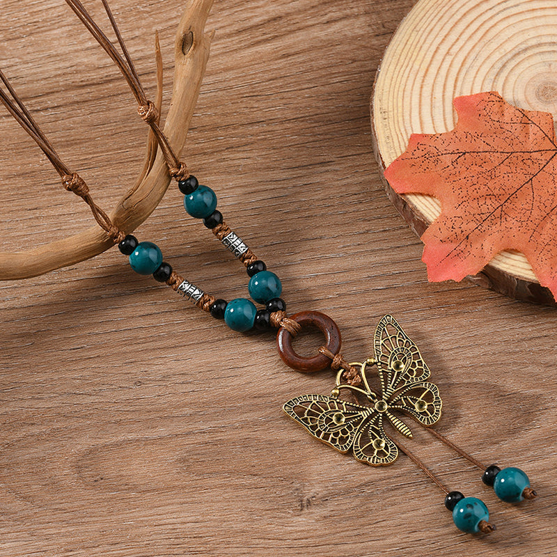 Boho Butterfly Pendant Beaded Necklace