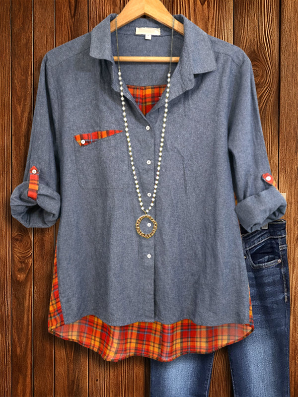 Rustic Plaid Denim Collar Shirt