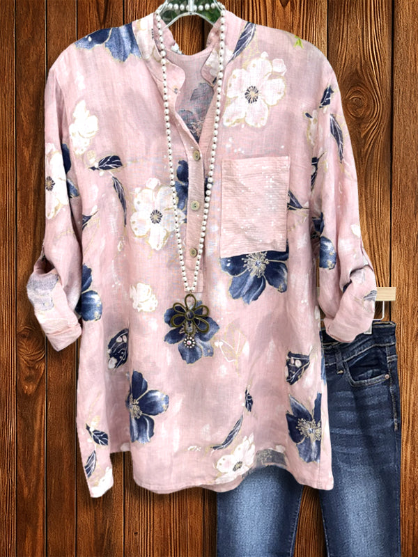 Pink Loose Linen Blouse