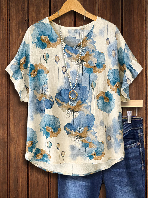 Blue Meadow Floral Linen Tee