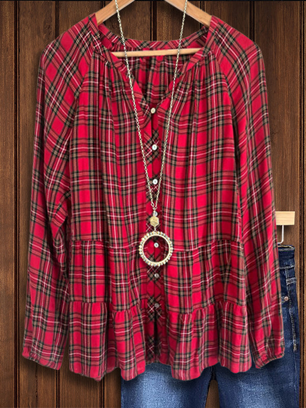 Red Check Tiered Ruffled Blouse