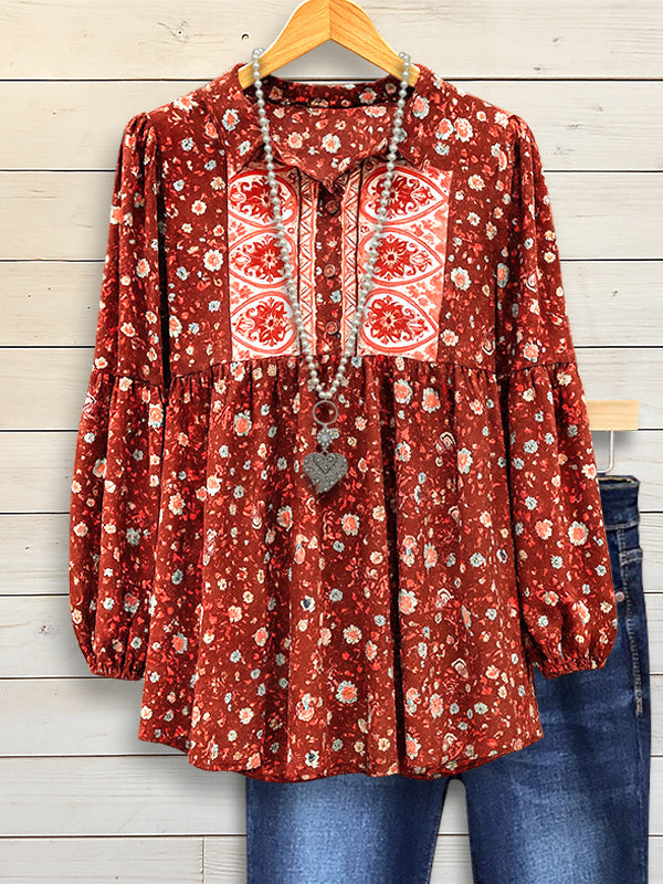 Vintage Floral Corduroy Casual Blouse