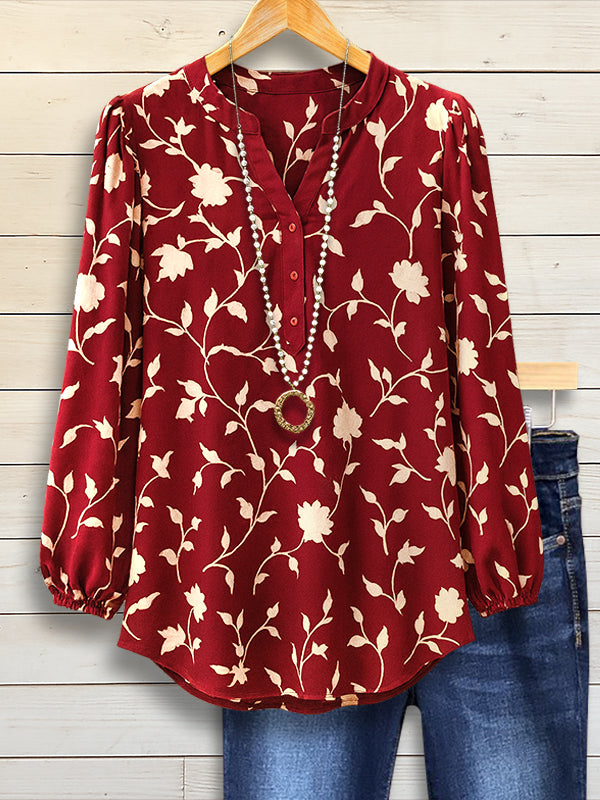 Wine Blossom Henley Blouse