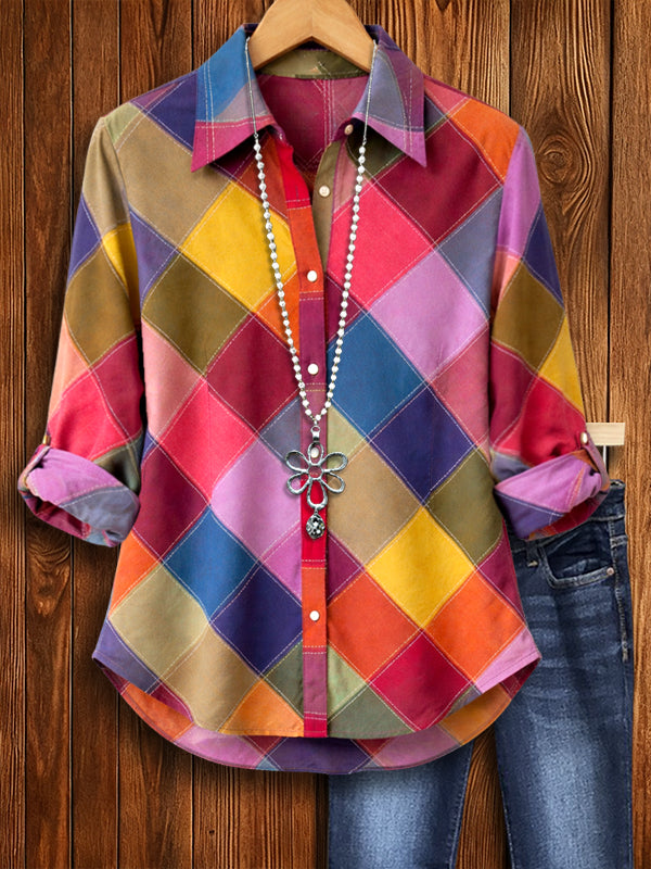 Plaid Patchwork Casual Blouse