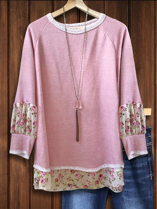 Round Neck Floral Printed Patchwork Sweatshirt