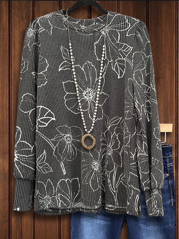 Line Floral Print Casual Top