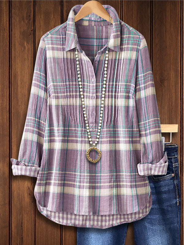 Plaid Print Pleated Casual Blouse