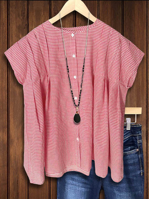 Plaid Pleated Casual Loose Blouse