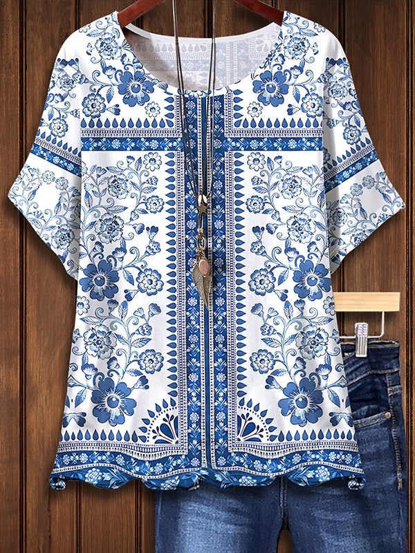 Ethnic Style Natural Print Casual Blouse