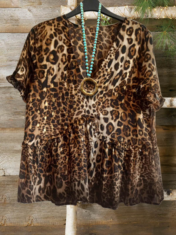 Leopard Pleated Casual T-shirt