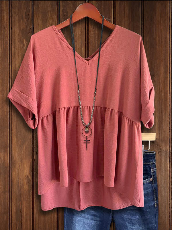 Split Neck Pleated Loose Blouse