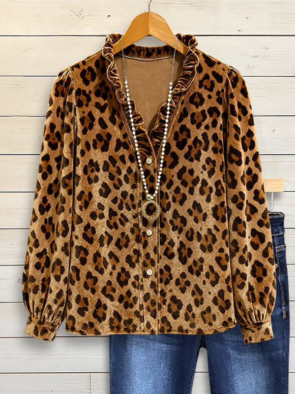 Wild Heart Velvet Ruffle Leopard Shirt