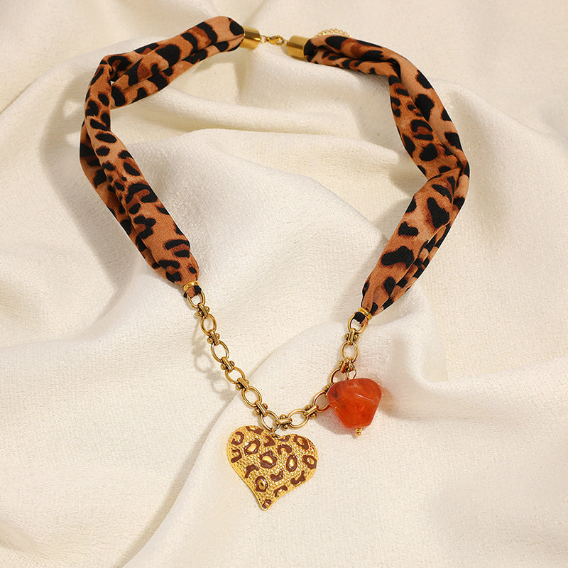 Leopard Print Heart Scarf Necklace