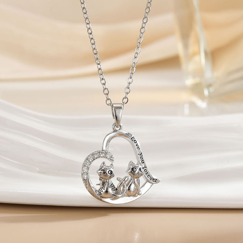 Love Forever Cat Heart Pendant Necklace