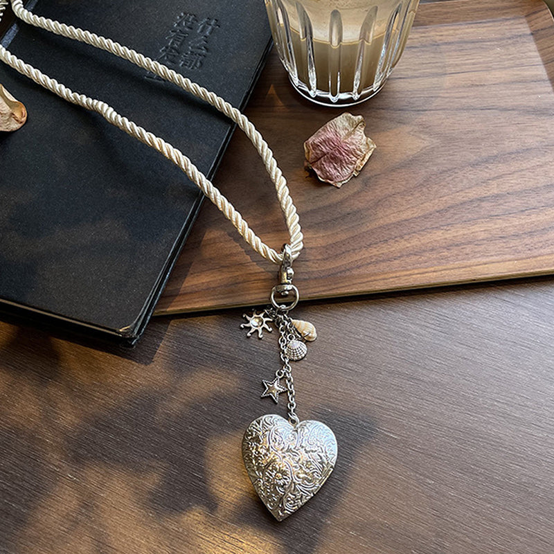 Vintage Heart Charm Rope Necklace