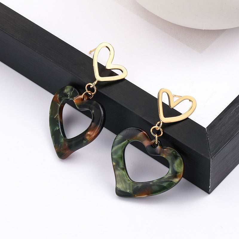Modern Double Heart Drop Earrings