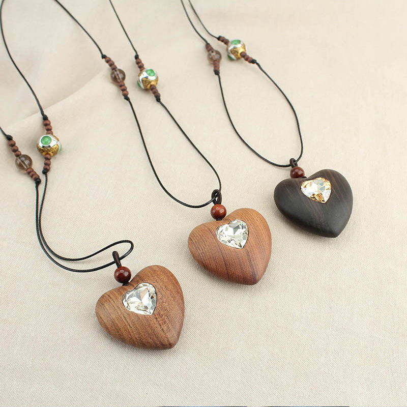 Wooden & Metal Heart Pendant Necklace