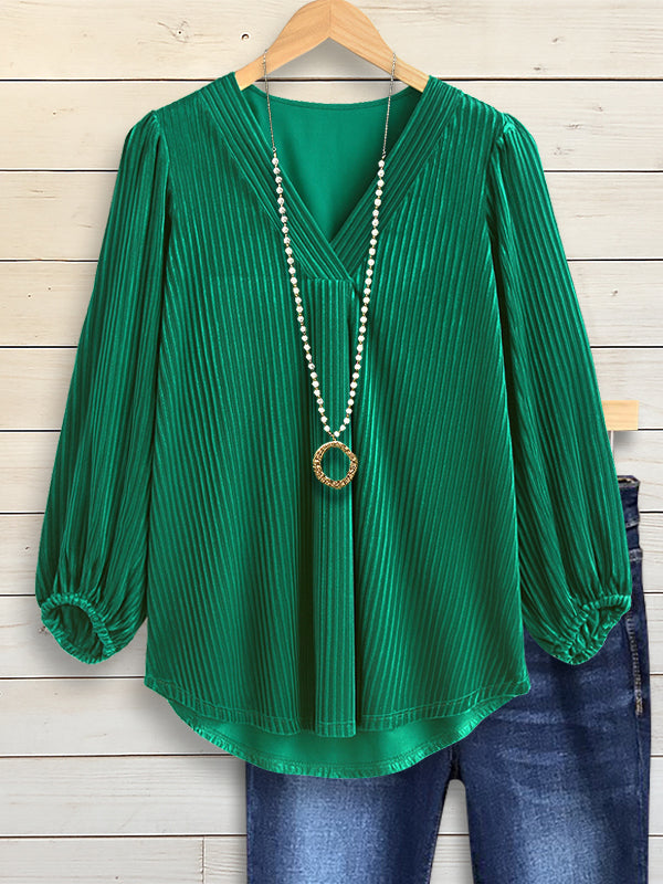 Velvet Pleated V Neck Top