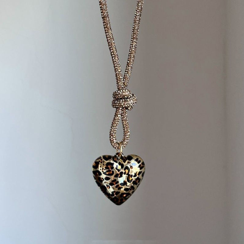 Leopard Heart Tassel Pendant Necklace